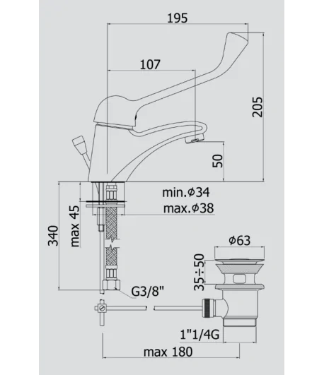 Miscelatore lavabo con piletta regolabile con tappo a scatto e flex inox di alimentazione