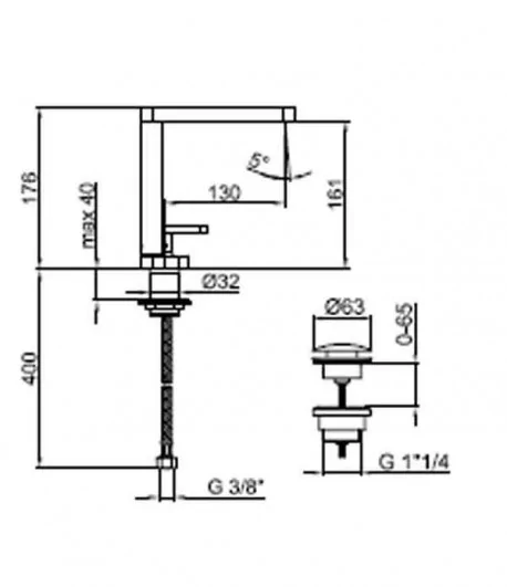 Miscelatore monocomando per lavabo con scarico up & down; con flex inox cm 37 att. 3/8” F.