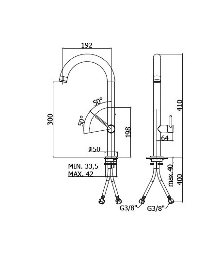 Bocca girevole 180° (adattabile 120° o 360°)
