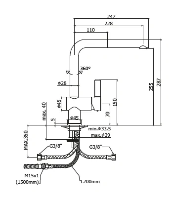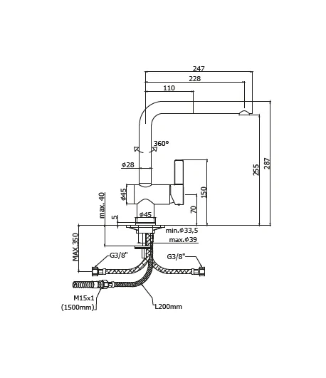 1 flessibile nylon 1/2”G x M15x1 L.1500mm con piombo
