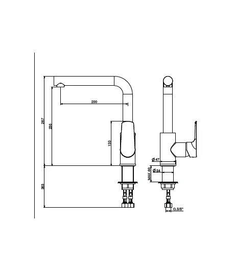 Miscelatore lavello monoforo alto con canna orientabile con