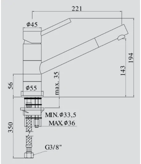 Monocomando con bocca abbattibile (sottofinestra)