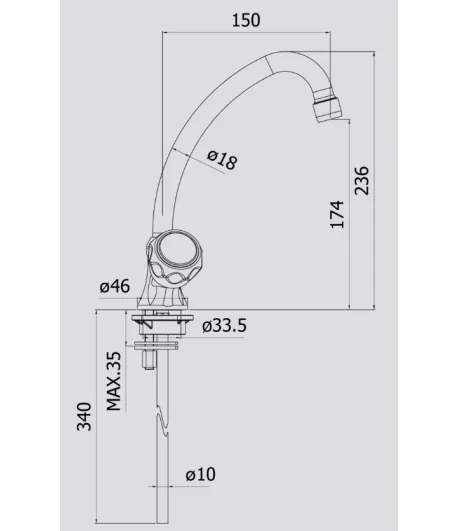 con canna tubo diritta orientabile - l.200mm con leva clinica