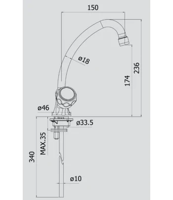 con canna tubo diritta orientabile - l.200mm con leva clinica