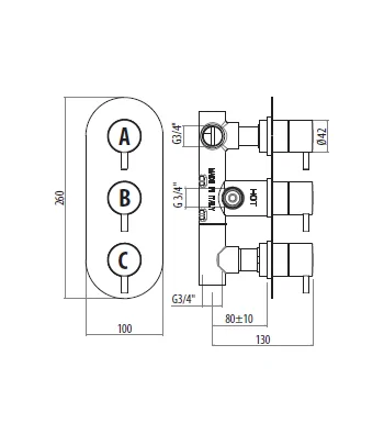 Miscelatore termostatico incasso doccia (2 uscite) con