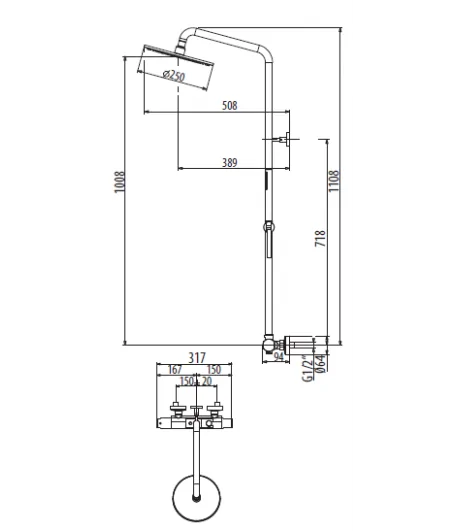 Miscelatore termostatico esterno doccia, completo di colonna doccia,