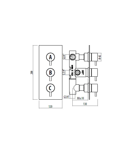 PARTE ESTERNA TERMOSTATICO INCASSO A 4 VIE PER DOCCIA