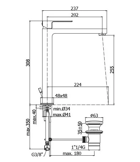 Miscelatore alto lavabo prolungato con
