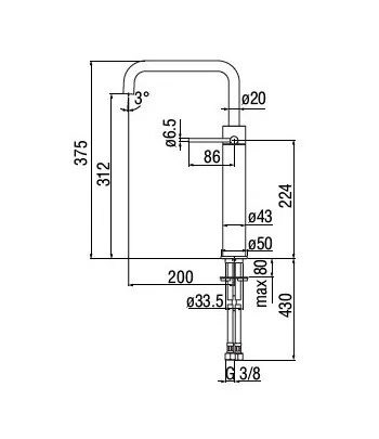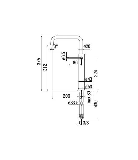 Rubinetto alto per lavabo con canna orientabile con aeratore M22x1