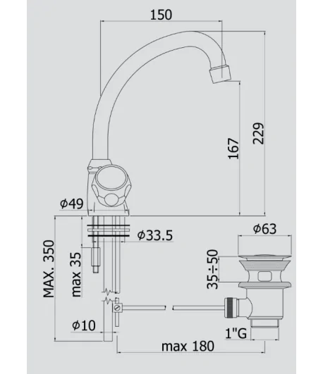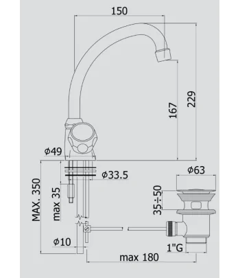 MIX LAVABO ALTO HOMIX1000 CON FLEX INOX BOCCA 150 MM CROMO