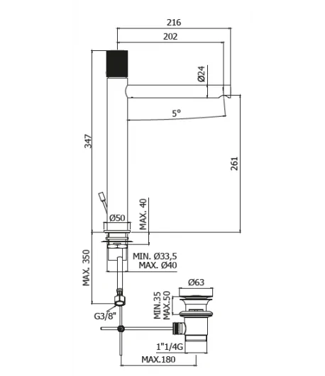 Miscelatore alto lavabo prolungato con