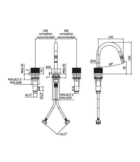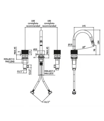 Batteria bidet con canna fissa con