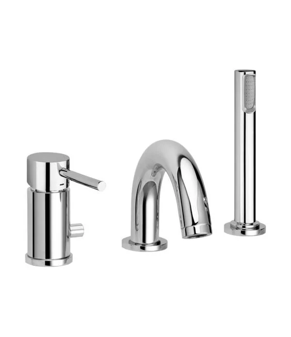 Gruppo per bordo vasca 5 fori completo con flessibile in gomma da 200 cm e doccetta.