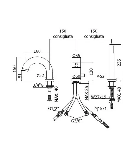 con bocca a cascata (3 fori)