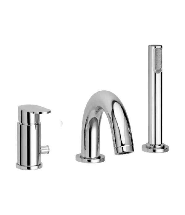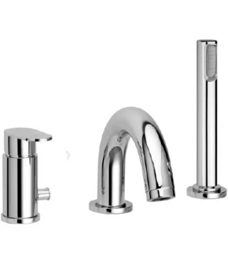 Batteria rubinetto bordo vasca con deviatore e con doccia estraibile