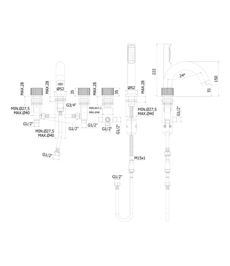 con bocca e aeratore M28x1 (3 fori)