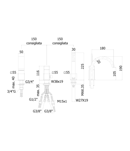 e Canna Piatta) per creare un rubinetto in grado di adattarsi perfettamente a qualsiasi tipologia di arredo ed esigenza di