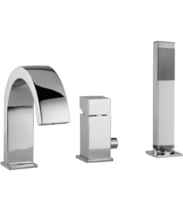 Batteria rubinetto bordo vasca con deviatore e con doccia estraibile
