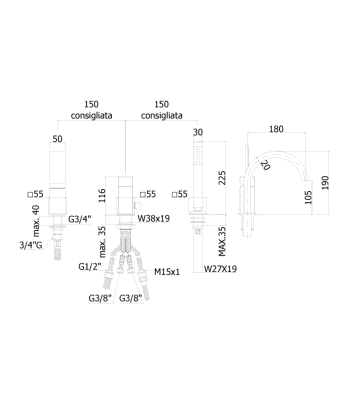 e Canna Piatta) per creare un rubinetto in grado di adattarsi perfettamente a qualsiasi tipologia di arredo ed esigenza di