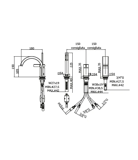 con bocca e aeratore M28x1 (3 fori)