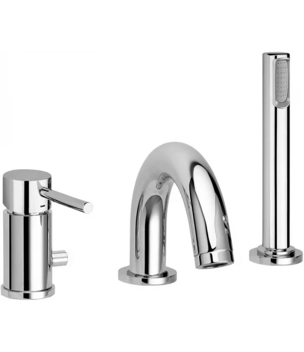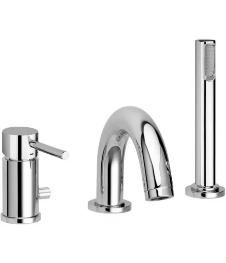 Batteria rubinetto bordo vasca con deviatore e con doccia estraibile