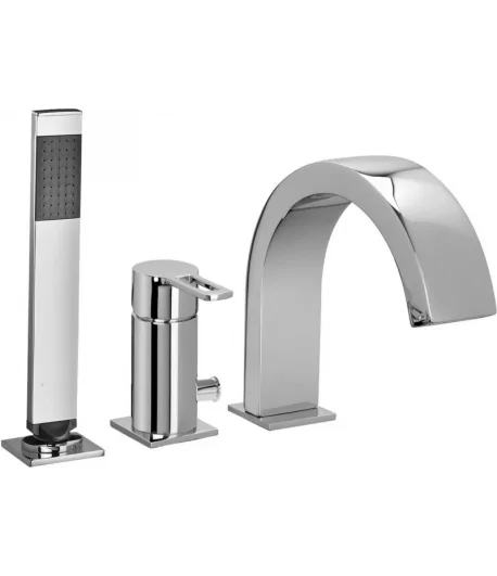Batteria rubinetto bordo vasca con deviatore e con doccia estraibile