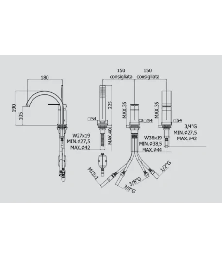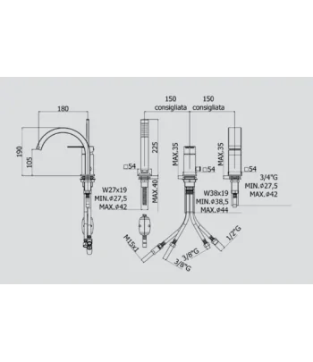con bocca e aeratore M28x1 (3 fori)