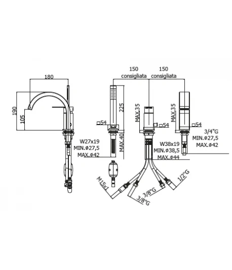 con bocca erogazione e aeratore M28x1 (5 fori)