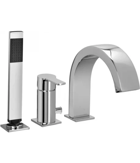 Gruppo per bordo vasca 5 fori completo con flessibile in gomma da 200 cm e doccetta.