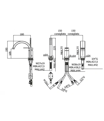 set 4 flex inox per miscelatore