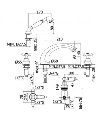 Rubinetto bordo vasca con deviatore con