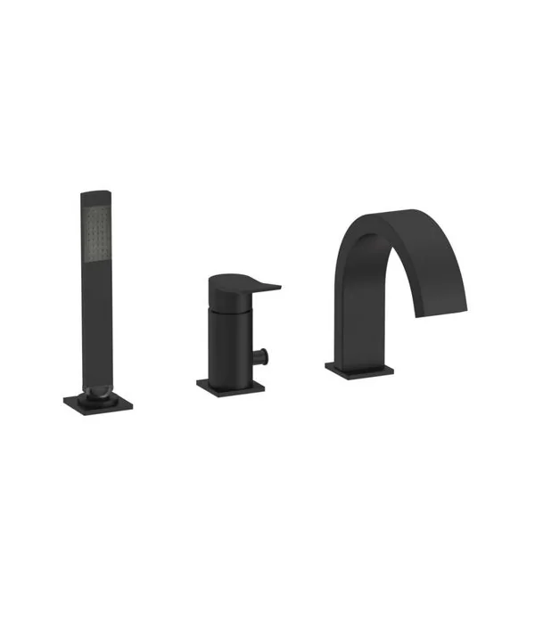 Batteria rubinetto bordo vasca con deviatore e con doccia estraibile