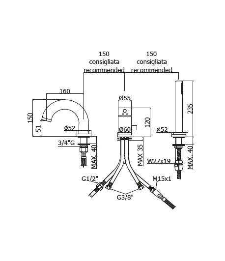 senza bocca erogazione (2 fori)