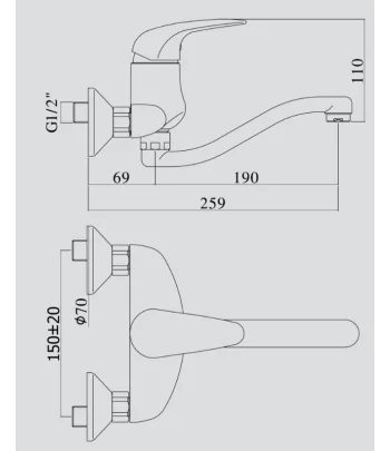 Rubinetto lavello da muro con leva clinica con