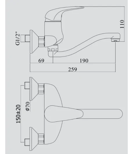 Rubinetto cucina a parete per lavello con leva clinica con