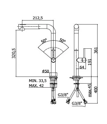 set 2 flessibili inox 3/8”G