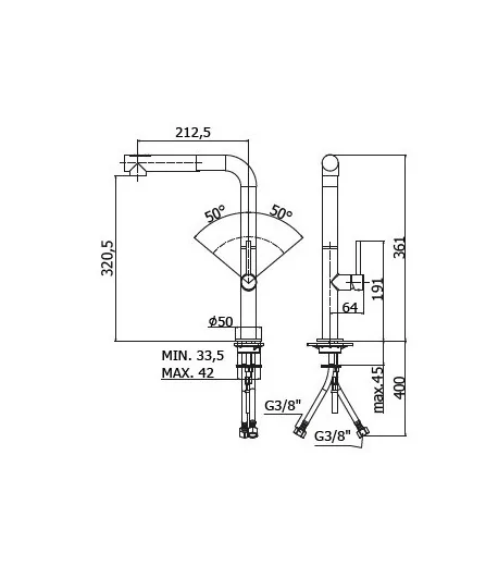 con doccia estraibile ABS 2 getti con canna tubo Ø30mm