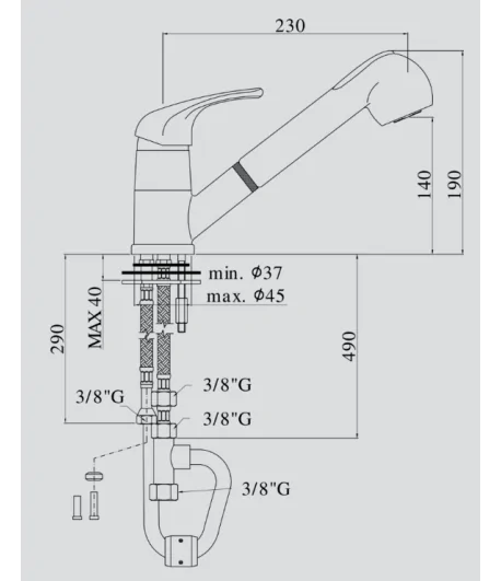 Rubinetto cucina con doccetta per lavello, con canna orientabile. Include: