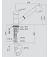 Rubinetto cucina estraibile per lavello monoforo a canna orientabile con: