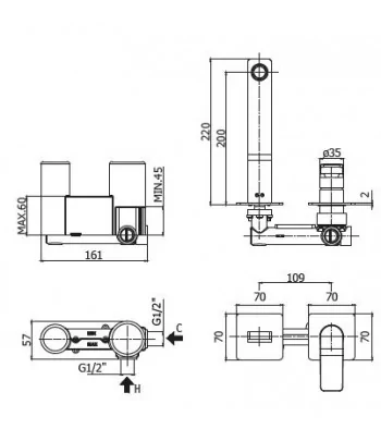 Ingresso acqua calda e acqua fredda ø 1/2”