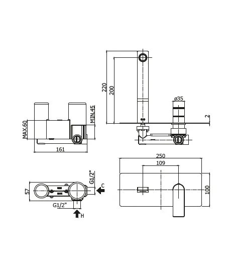 Miscelatore incasso lavabo con