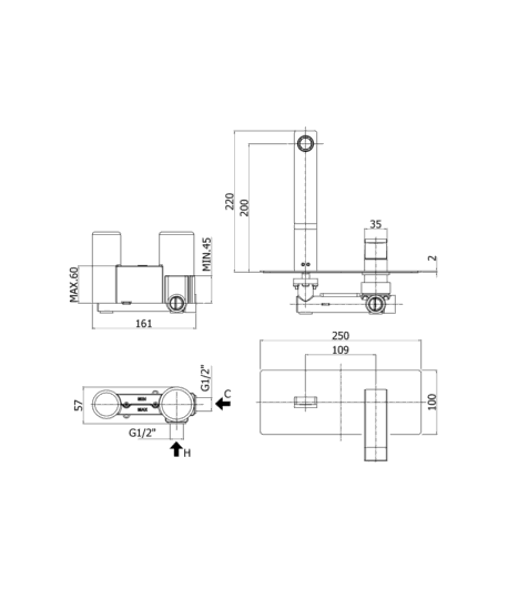 Miscelatore lavabo a muro con scatola ispezionabile
