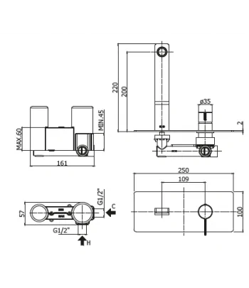 Miscelatore lavabo a muro con scatola GBOX.