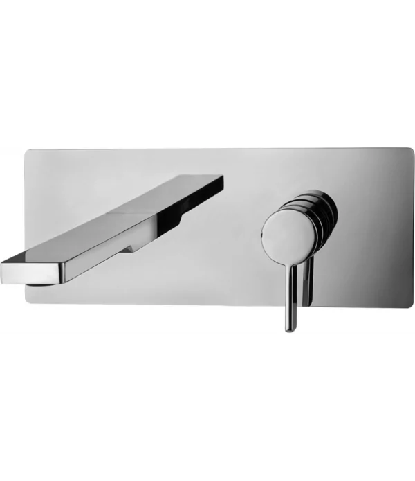 Miscelatore monocomando per lavabo incasso muro, con piastra orizzontale, senza scarico e flessibili mm 160.
