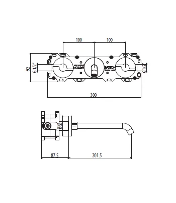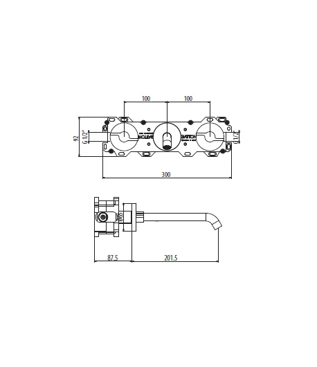 Batteria lavabo a muro con scatola ispezionabile bocca Ø 18 mm