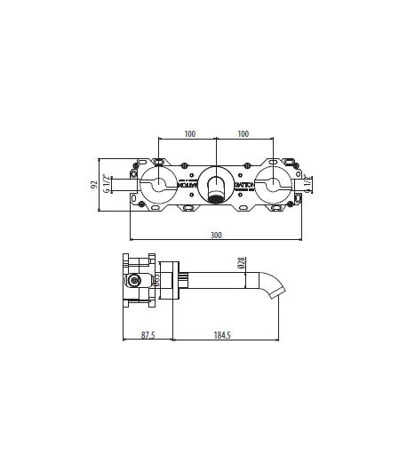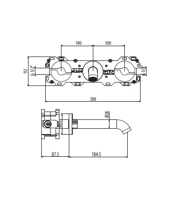 Batteria lavabo a muro con scatola ispezionabile bocca Ø 28 mm
