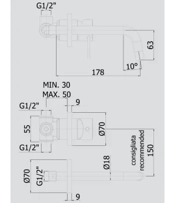 Miscelatore incasso lavabo parte esterna monocomando a parete bocca lunga