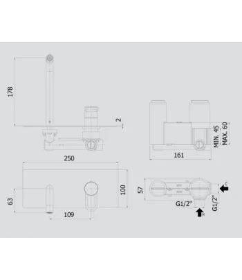 Miscelatore lavabo a muro con scatola GBOX
