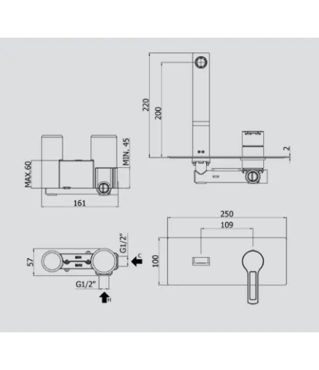 Miscelatore incasso lavabo con