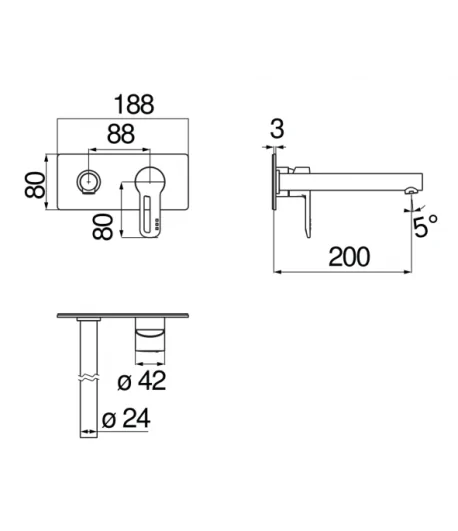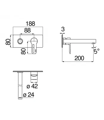 PARTE ESTERNA LAVABO MONOCOMANDO A PARETE BOCCA LUNGA